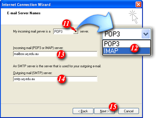 | 12) Select 'IMAP' from the list. | |||||