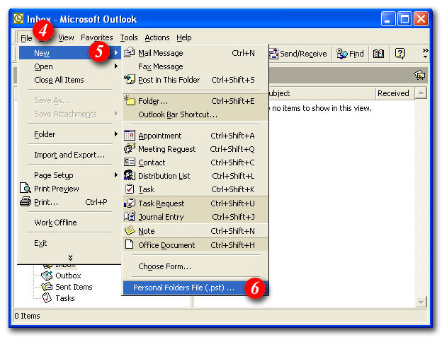 | 6)Select 'Personal Folders File (.pst) ... ' |
