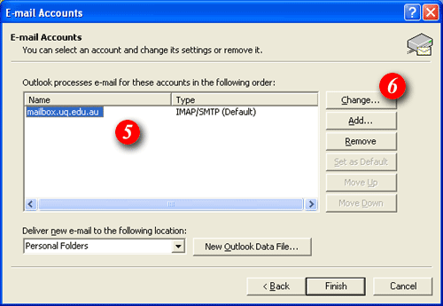 3)Put a dot in the 'View or change existing e-mail accounts' option.